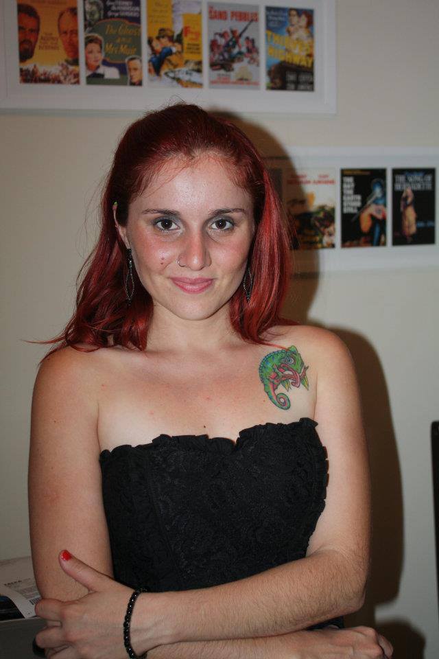Aqui Florence super red atitude, red nails e um camaleão de tattoo, porque ela é mesmo camaleoa.